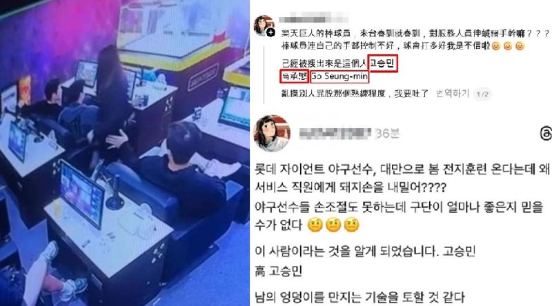 A씨는 "야구 선수들이 손 조절도 못 하는데 구단의 선수 관리에 대해서도 문제가 있다"면서 "이미 이 사람이 누구인지 알게 됐다"며 고승민이라는 이름과 한자 표기와 영문 표기 '高承慜 Go Seung-min' 등 실명까지 언급했다.