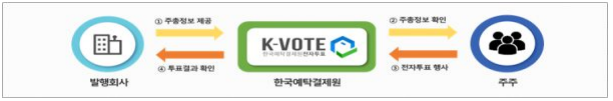 한국예탁결제원은 국내 최초로 지난 2010년 전자투표, 2015년 전자위임장 서비스를 도입한 이후 관련 서비스를 운영해오고 있다. 지난 2017년 모바일 전자투표 서비스 도입에 이어 2021년에는 전자고지서비스(e-Notice)를 도입해 주주총회 정보 제공과 전자투표 연계를 강화했다.