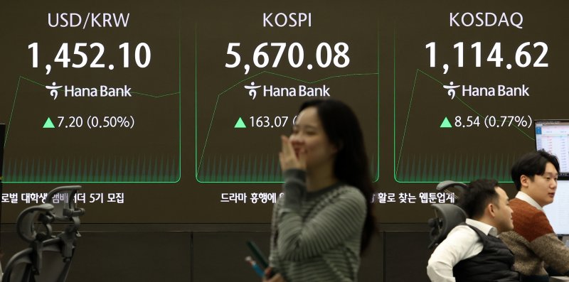 [서울=뉴시스]권안나 기자 = 미국 연방공개시장위원회(FOMC) 의사록에서 금리 인하에 대한 기대가 축소되면서 설 연휴 이후 첫 거래일 원·달러 환율이 다시 1450원대를 넘어섰다. 다음주 예정된 한국은행의 금리 결정에도 불확실성이 커지고 있다.