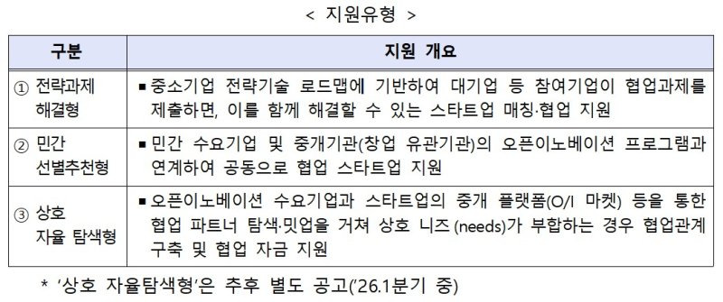 오픈이노베이션 중개 플랫폼을 통해 협업 파트너를 탐색해 매칭된 경우 지원하는 '상호 자율탐색형'도 다음달 이후 모집 공고를 할 계획이다.