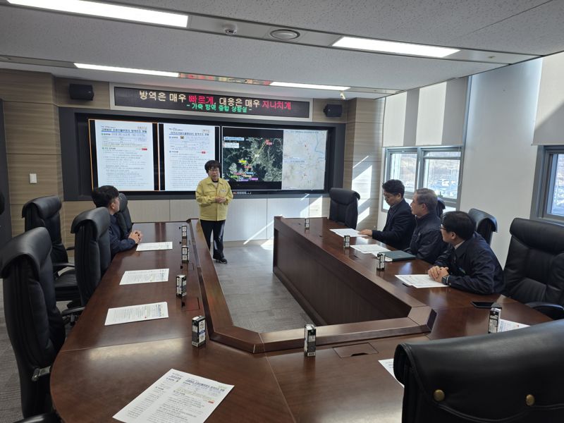 이번 방문은 최근 경북지역 내 고병원성 조류 인플루엔자(AI)(6일/봉화, 10일/성주) 및 아프리카 돼지 열별(ASF)(12일/김천)가 잇따라 발생하며 위기감이 고조된 가운데 명절 연휴도 반납한 채 24시간 상황실을 지키는 관계자들의 노고에 감사의 뜻을 전하고자 마련됐다.