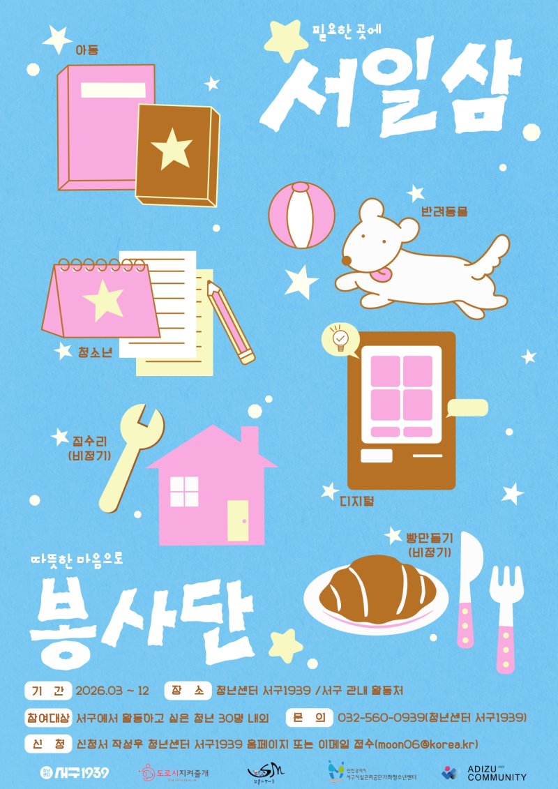 선발된 봉사단원은 ▲가좌청소년센터 청소년 참여 프로그램 기획 ▲샘물지역아동센터 아동 교육 지원 ▲㈔도로시지켜줄개 유기견 보호소 봉사 ▲아디주커뮤니티 어르신 디지털 교육 지원 등 4개 분야 활동에 참여하게 된다.