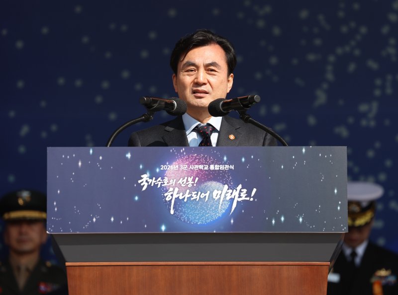 안 장관은 이날 충남 계룡대 대연병장에서 열린 통합임관식에서 신임 장교들을 향해 "여러분은 내란이라는 국가적 위기를 겪었다. 그 혹독한 겨울을 견디며 민주주의와 헌법의 가치를 가슴에 새긴 세대가 바로 여러분"이라며 '국민의 군대'의 주역이 될 것을 당부했다.