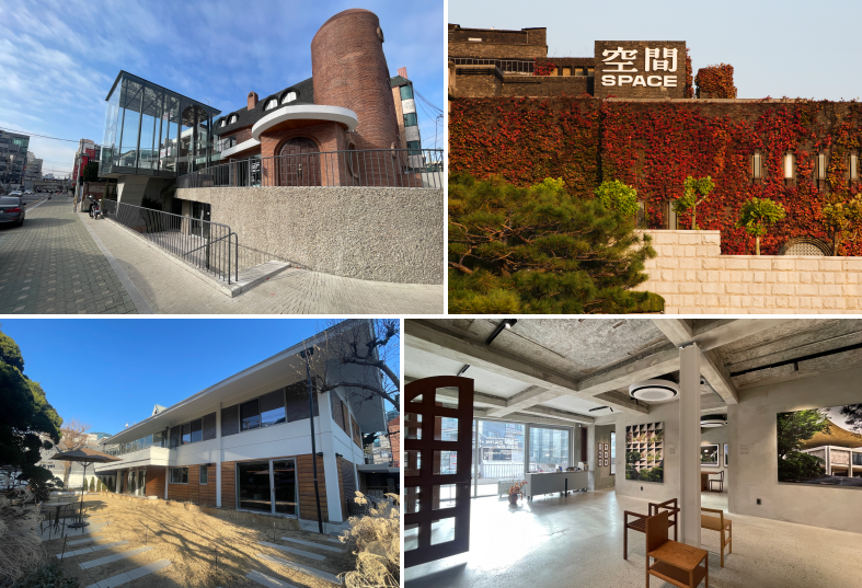 앞서 소개한 스타벅스의 '장충라운지R점', 연희정음의 '푸어링아웃 메라키', 아라리오뮤지엄의 '카페 프릳츠'는 재생, 리모델링을 통해 각각 나상진·김중업·김수근의 건축 공간에 자리했다. 카페를 통해 사람들은 1세대 현대건축물 안에서 공간을 경험했다.