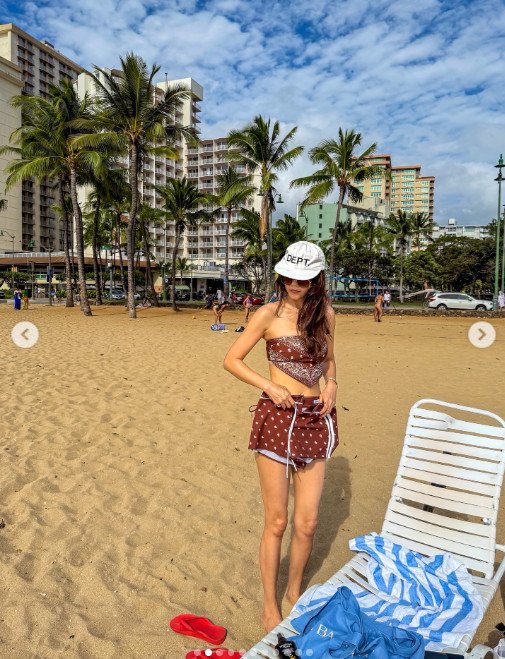 사진에서 채정안은 하와이 해변을 배경으로 페이즐리 패턴이 돋보이는 반다나 튜브톱 디자인의 비키니를 입고 늘씬한 몸매를 뽐내고 있는 모습이다. 또한 짧은 핫팬츠로 쭉뻗은 각선미까지 자랑해 이목을 집중시킨다.