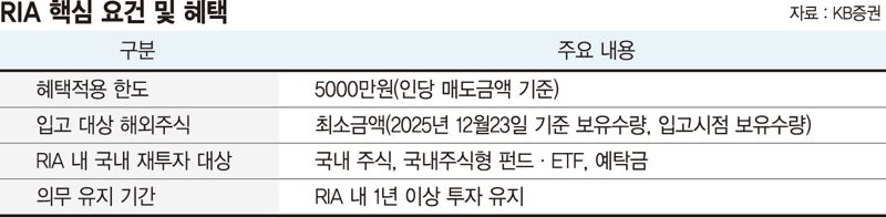 다만 해외주식 매도 대금이 RIA 내에 묶이게 되는 만큼 투자자들의 신중한 선택이 필요하다는 지적이다. 강수인 KB증권 세무전문위원은 "RIA는 해외주식 양도소득에 대한 세제 혜택을 제공하는 만큼 투자자 선택을 제한하는 양면성을 지닌다"며 "1년간 자금 인출이 불가능하므로 단기적인 현금 흐름이 필요한 소액투자자에게는 부담으로 작용할 수 있다"고 말했다.