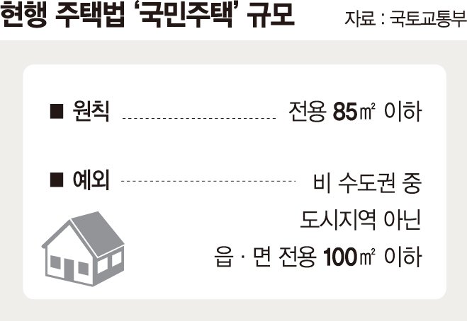 현행 주택법을 보면 주택 정책의 기준이 되는 국민주택 규모는 전용 85㎡ 이하이다.