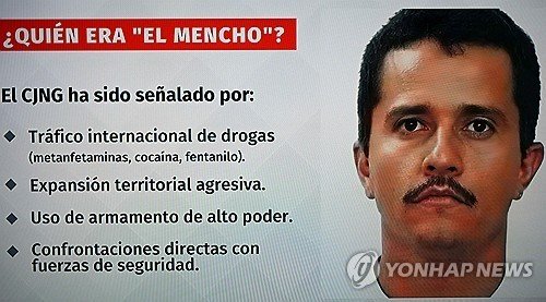 [파이낸셜뉴스] 멕시코 정부가 22일(현지시간) 군사작전을 통해 세계적으로 악명 높은 마약 밀매 조직 '할리스코 신세대 카르텔'(CJNG)의 수장 네메시오 오세게라, 일명 '엘 멘초'를 사살했다고 AP통신 등이 보도했다.