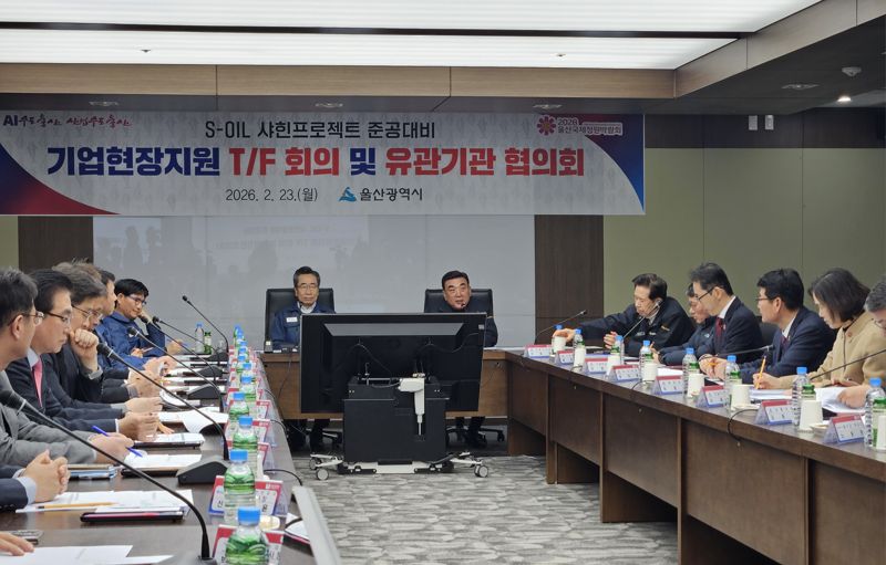 울산시는 23일 에쓰오일(S-OIL) 온산공장 대회의실에서 기업 현장지원 전담조직(TF) 및 유관기관 협의회 회의를 개최했다. 회의에는 김두겸 울산시장과 S-OIL 박봉수 사장을 비롯해 울산시 기업 현장지원 전담조직(TF) 위원, 유관기관 협의회 위원과 S-OIL 관계자 등 20여 명이 참석했다.