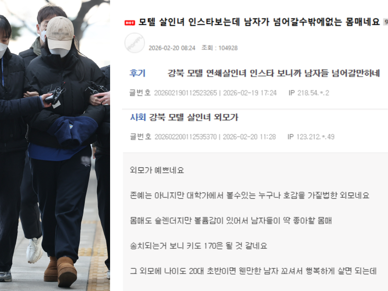[파이낸셜뉴스] 사적 제재의 일환으로 '강북구 모텔 살인 사건'의 피의자 김모씨(22)의 실명과 사진 등이 무분별하게 확산된 가운데 일각에서 김씨의 외모를 치켜세우는 분위기가 형성되고 있어 논란이 되고 있다.