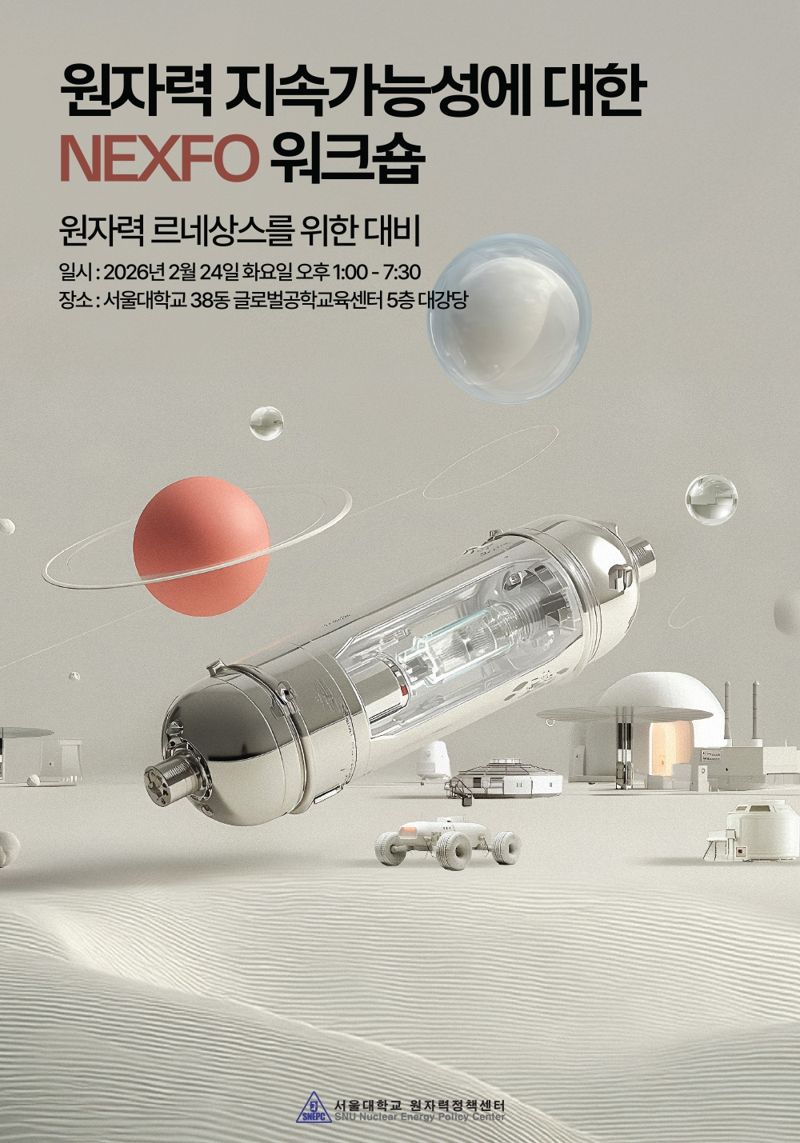 [파이낸셜뉴스] 서울대 원자력정책센터가 오는 24일 2026년 '원자력 지속가능성에 대한 NEXFO 워크숍'을 개최한다고 23일 밝혔다.
