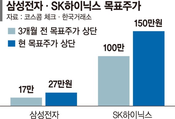 실적 기대감에 목표주가도 줄상향되고 있다. 삼성전자의 목표주가 상단은 대신증권이 제시한 27만원이다. 지난해 11월만 해도 목표주가 상단은 17만원이었는데, 3개월새 59%가량 상향된 것이다.