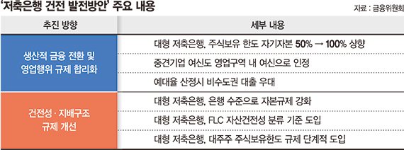이번 방안의 핵심은 생산적 금융 전환을 확대를 위해 규제를 완화한 것이다. 우선 대형 저축은행의 유가증권 보유한도가 대폭 확대된다.