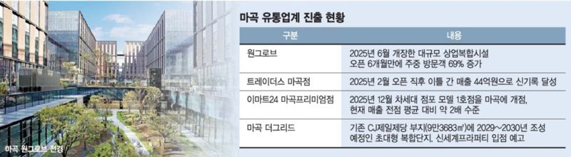 진출한 유통사들도 두드러진 성과를 내고 있다. 이마트의 트레이더스 마곡점은 지난해 2월 오픈 직후 이틀 간 매출 44억원을 기록하며 신기록을 세운 바 있다. 아울러 빕스 마곡 원그로브점은 2024년 개점 첫날 매출과 방문객 수 모두 전 점포 중 1위를 기록했고, 2주 만에 누적 방문객 1만명을 돌파하기도 했다.