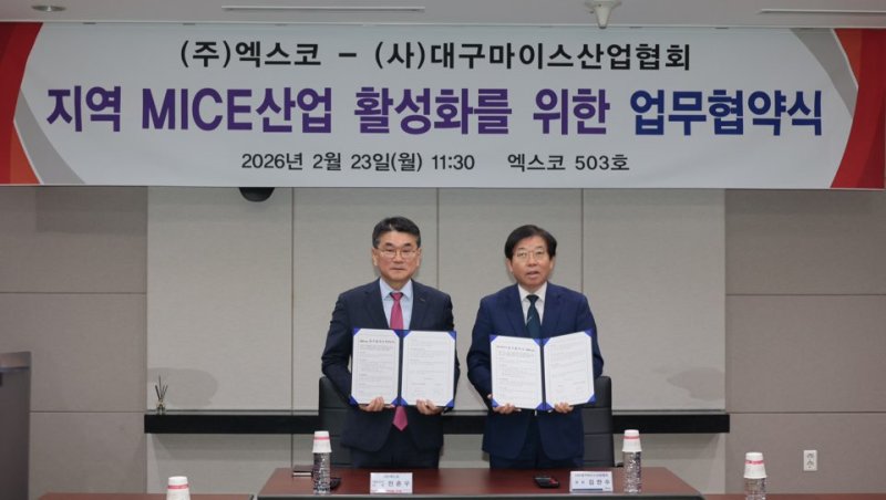 23일 양 기관은 엑스코에서 '지역 MICE 산업 활성화 및 상생협력 체계 구축'을 위한 업무협약을 체결했다. 이번 협약을 통해 양 측은 지역 특화 MICE 모델 개발과 기업 성장을 위해 다각도로 협력할 것을 약속했다.