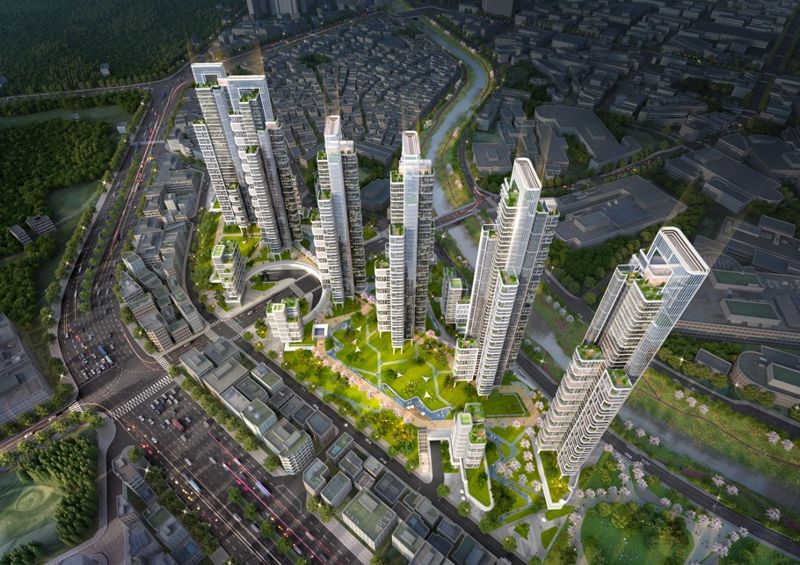 스트리트형 커뮤니티몰에는 △다목적 체육관 △피트니스 △메디컬 라운지 등을 넣었다. 고층 주동 상부에는 △연회장 △게스트하우스 △보타닉 가든 △스카이 카페 △드론 택배 및 택시 서비스 공간 등을 갖춘 6가지 테마의 스카이 커뮤니티를 구성할 계획이다.