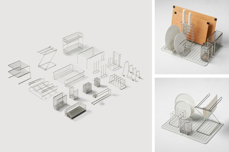 먼저 모던한 디자인의 다용도 주방 정리 11종을 선보인다. '와이어 바스켓'은 1~2인 가구에 적합한 소형 식기건조대로, '실리콘 건조 매트'와 함께 사용하면 세척 후 건조 동선을 줄일 수 있다. 식기 건조 용도로 활용 가능한 실리콘 건조 매트는 2가지 크기로 접어 간편하게 보관할 수 있다. '접시꽂이' 또한 접시뿐 아니라 도마·쟁반·도서 꽂이 등으로도 쓸 수 있다.