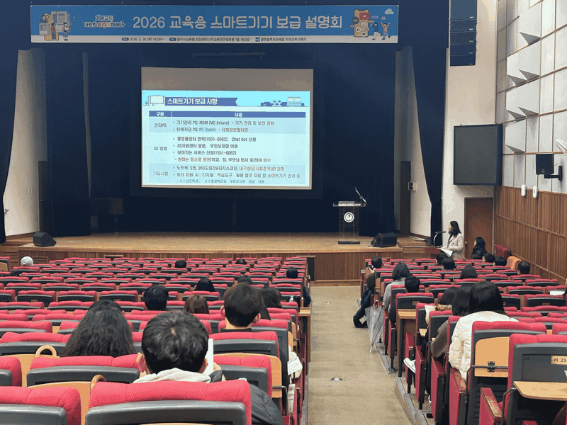 한편 시교육청은 스마트기기가 원활하게 보급될 수 있도록 지난 24일 광주AI교육원 전산센터 대강당에서 중·특수학교 업무 담당자 120여명을 대상으로 '2026년 교육용 스마트기기 보급 설명회'를 개최했다.