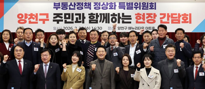 장동혁 대표는 25일 서울 양천구 해누리타운에서 열린 특위 주최 '서울 부동산 현장 간담회'에 참석, "내 집을 마련하겠다는 분, 성실하게 일해 집 한 채 갖고 계신 분, 이런저런 이유로 어쩔 수 없이 여러 채 집을 가진 분들을 죄악시해서는 안된다"며 "말로써 겁박하거나 갈라치기 하는 방식으로 해결할 수 없다"고 말했다.