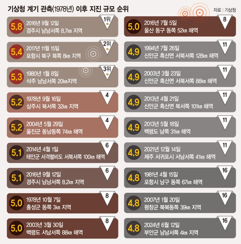 최근에는 부안(2024년), 장수(2023년) 등 과거 지진이 잦지 않았던 지역에서도 산발적으로 지진이 발생하고 있다.