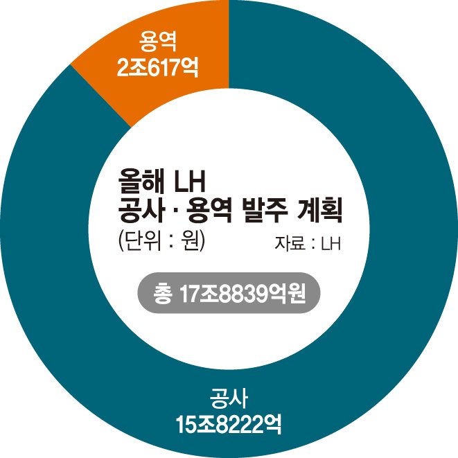 25일 LH에 따르면 올해 발주는 총 1515건, 17조8839억원 규모다. 공사가 15조8222억원, 용역은 2조617억원을 발주할 계획이다.