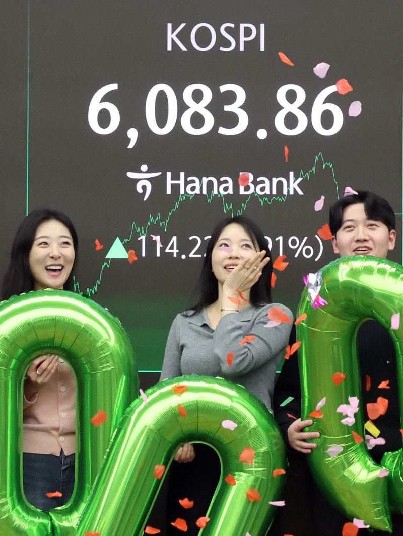 25일 한국거래소에 따르면 전 거래일 대비 114.22p(1.91%) 오른 6083.86에 거래를 마쳐 닷새 연속 사상 최고치를 갈아치웠다. 이날 지수는 전장 대비 53.06p(0.89%) 오른 6022.70에 출발, 개장과 동시에 6000선을 넘어섰다. 이후 장중 6144.71까지 오르며 6100선을 터치했다.