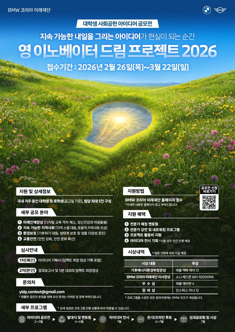 영 이노베이터 드림 프로젝트 공모전 접수는 BMW 코리아 미래재단 공식 홈페이지를 통해 진행되며, 자세한 사항은 해당 홈페이지에서 확인할 수 있다.