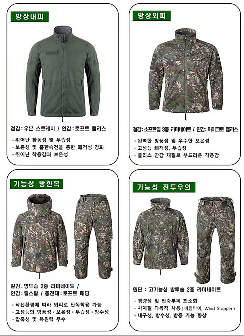방상내피·방상외피·기능성 방한복·기능성 전투우의