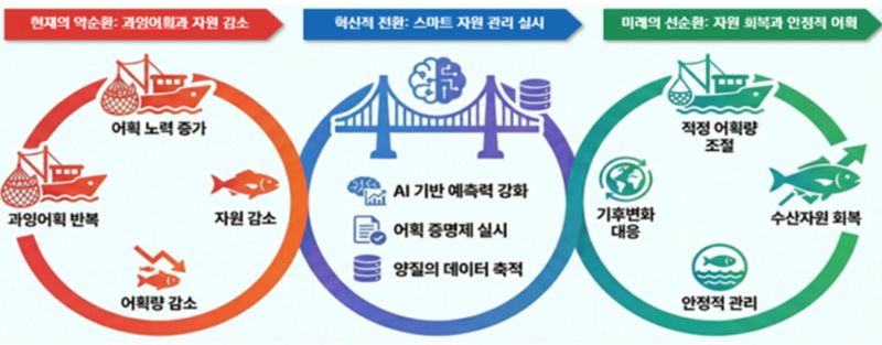 또 인공지능(AI) 기반 기후변화 대응 수산자원 관리체계 구축을 목표로 현재 기관별로 분산된 기후, 수산자원, 해양환경 변동 등 각종 데이터를 통합·표준화에 나선다. 기후위기의 식량 안보와 AI 시대 등에 대비해 국내 최초로 ‘한국형 수산자원 관리 AI 플랫폼’ 구축을 위한 기술개발 등도 추진한다.