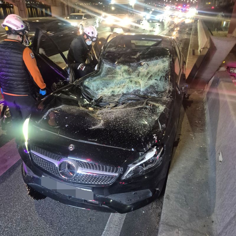 추락 과정에서 포르쉐가 덮친 벤츠 운전자인 40대 남성도 경상을 입었다.