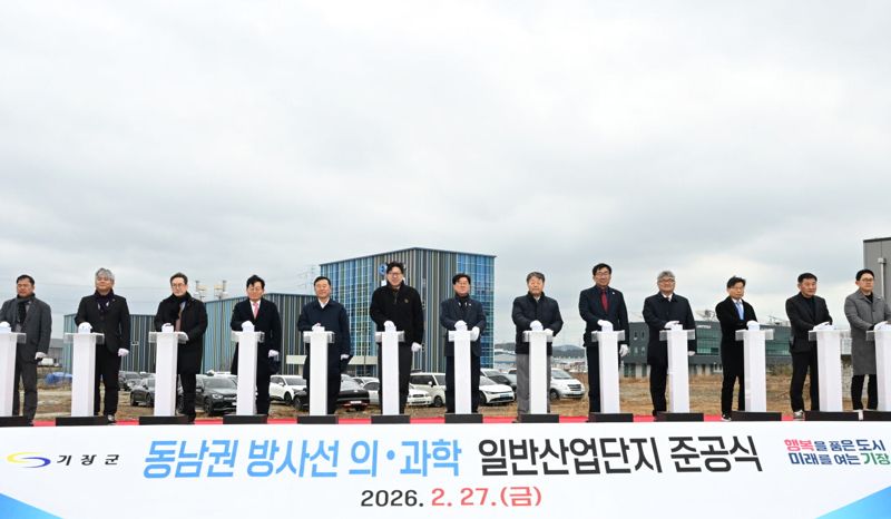 부산시와 기장군은 27일 오후 장안읍 반룡리 소재 주식회사 제엠제코 부지에서 동남권 방사선 의·과학 산단 준공식을 개최했다.