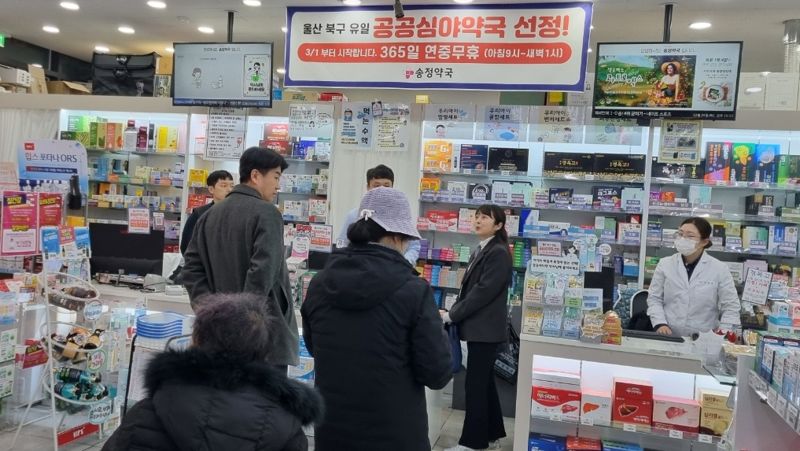 운영에 앞서 울산시와 북구보건소는 지난 2월 24일 송정약국을 방문해 365일 연중무휴 운영을 위한 인력 활용 방안, 공공 심야약국 누리집 관리, 주민 복약 상담 등을 점검했다.