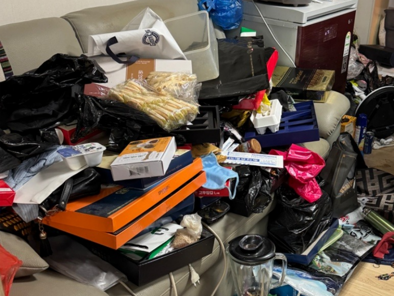 사진 속의 방은 쓰레기로 가득 차 있었다. 과자 봉지와 식료품 등 각종 생활 쓰레기가 뒤엉켜 발 디딜 틈이 없는 상태였다.