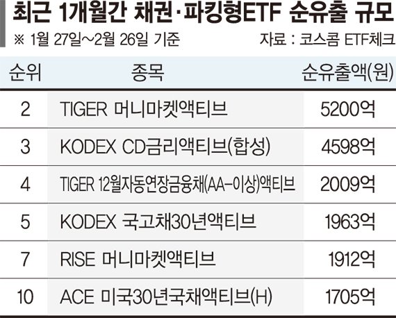 파킹·채권형 ETF 순유출 상위권