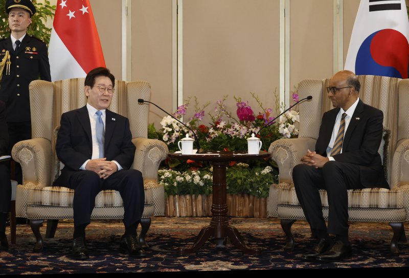 【파이낸셜뉴스 싱가포르=최종근 기자】이재명 대통령은 2일 로렌스 웡 싱가포르 총리와 정상회담에 앞서 타르만 샨무가라트남 싱가포르 대통령과 만나 "제가 오래전 성남시장으로 일을 할때부터 싱가포르의 부동산 정책에 대해서 각별한 관심이 있었는데, 이번 방문을 계기로 싱가포르의 부동산 정책에 대해서도 많이 배워가야 될 것 같다"고 밝혔다. 싱가포르를 국빈 방문 한 이 대통령은 이날 오전 싱가포르의 공식 환영식과 '난초명명식'에 이어 타르만 대통령과 면담을 가진 자리에서 이같이 말했다.