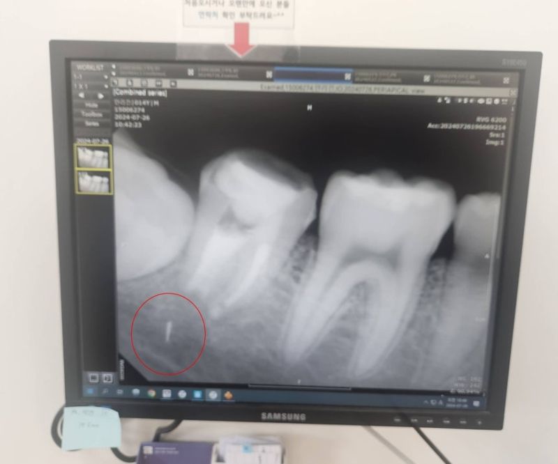 2일 연합뉴스에 따르면 사건은 지난 2024년 4월 경기 구리시 한 동네 치과의원에서 발생했다. 당시 중학교 3학년이던 황모(49)씨의 아들 안모(17)군은 치과 치료 후 통증과 염증에 시달렸다. 이에 한 달여 뒤 엑스레이를 촬영했고, 충격적인 사실을 확인했다.