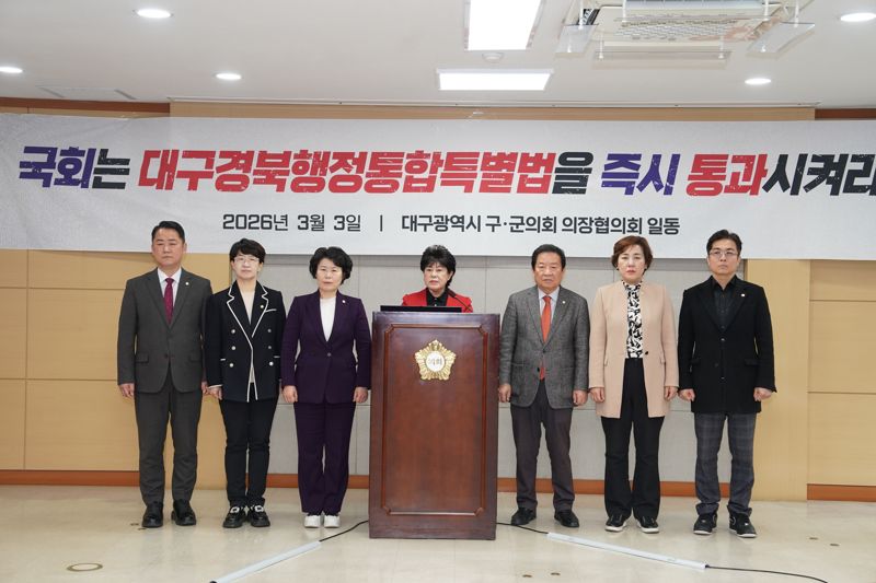 이번 선언은 협의회장인 조규화 수성구의회 의장을 비롯해 정인숙 동구의회 의장, 송민선 남구의회 의장, 최수열 북구의회 의장, 서민우 달서구의회 의장, 김은영 달성군의회 의장, 최규종 군위군의회 의장 등 7개 구·군의회 의장이 참석해 통합 추진에 힘을 실었다.