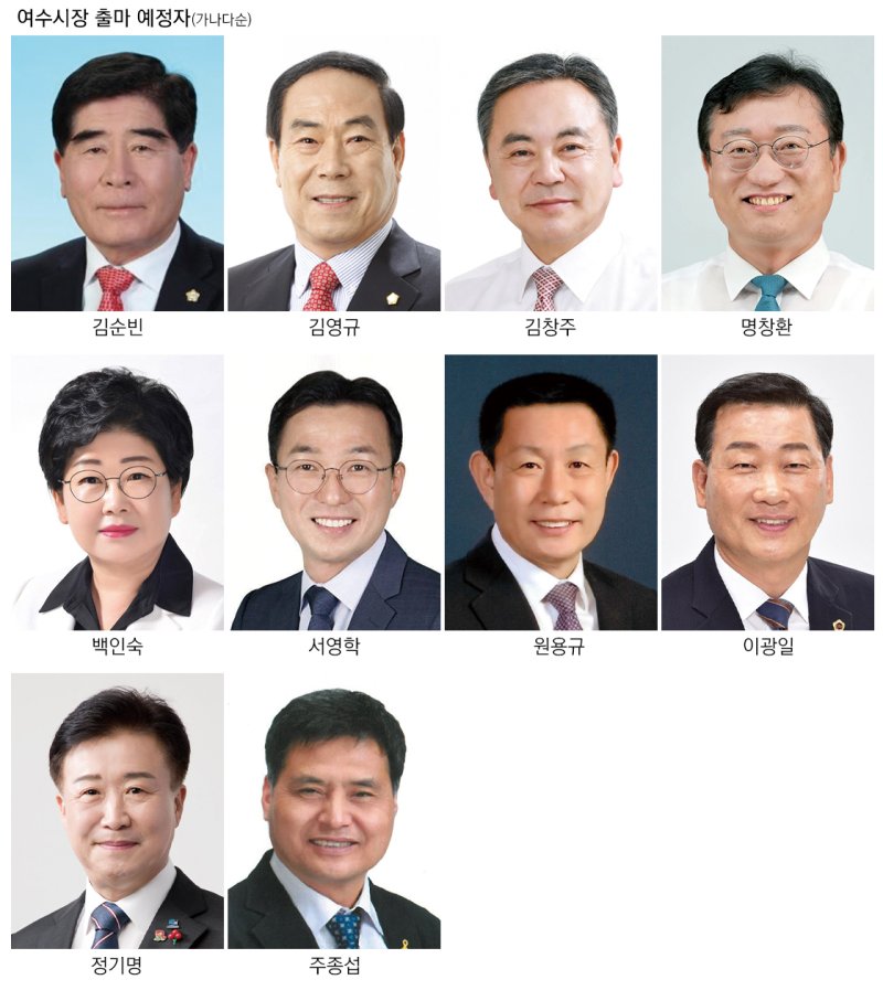 명창환 전 전남도행정부지사는 조국혁신당의 간판을 달고 출마한다. 김창주 전 여수 경영인협회장과 원용규 전 여수시의원은 무소속으로 나섰다.