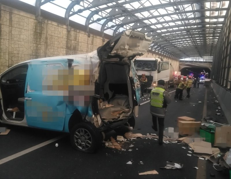 4일 경기 김포경찰서와 김포소방서에 따르면 지난 3일 오후 2시59분께 김포시 운양지하차도 강화 방면 도로에서 70대 운전자 A씨가 몰던 트레일러가 승합차를 들이받았다.