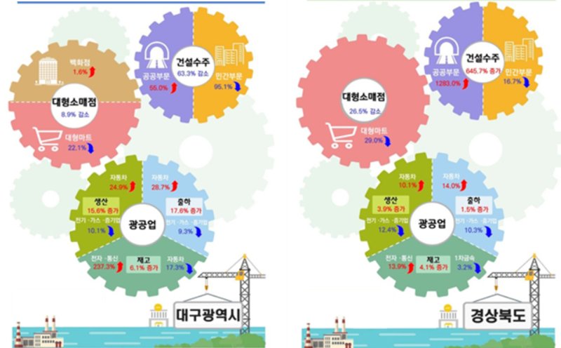경북은 건설수주액과 광공업생산이 증가한 반면, 소비는는 부진했다.