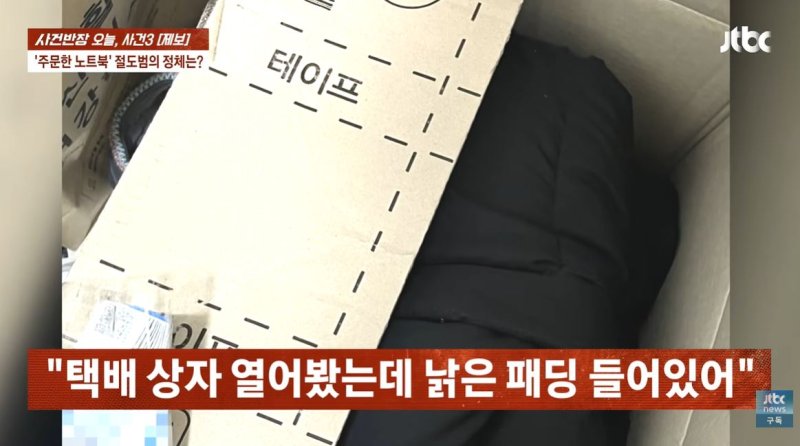3일 JTBC '사건반장' 보도에 따르면 제보자인 30대 여성 A씨는 지난해 2월 한 대형 온라인 쇼핑 플랫폼을 통해 노트북을 구매했다. 설레는 마음으로 택배를 받았으나 상자는 이상하리만큼 가벼웠고, 자세히 보니 포장 테이프가 여러 군데 뜯겼다 다시 붙여진 흔적이 고스란히 남아 있었다. 상자 안을 확인한 A씨는 경악했다.