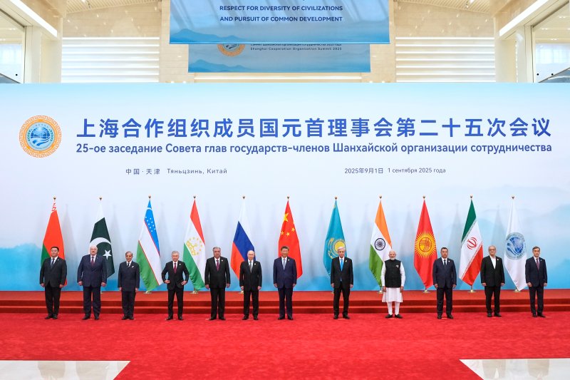 SCO는 2001년 6월 중국과 러시아 및 카자흐스탄·키르기스스탄·타지키스탄·우즈베키스탄 등 중앙아시아 4개국이 회원국으로 참여해 출범했으며, 이후 인도·파키스탄·이란·벨라루스가 참여했다.