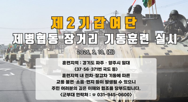 부대 관계자는 “국민의 생명과 재산, 안보를 보장하기 위한 훈련인 만큼 지역주민의 양해와 협조를 부탁드린다”고 전했다.