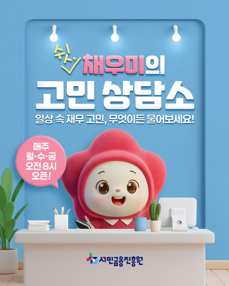 (서울=뉴스1) 정지윤 기자 = 서민금융진흥원은SNS 채널에서 재무 고민을 나누고 해결하는 '쉿, 채우미의 고민 상담소'를 운영한다고 4일 밝혔다.