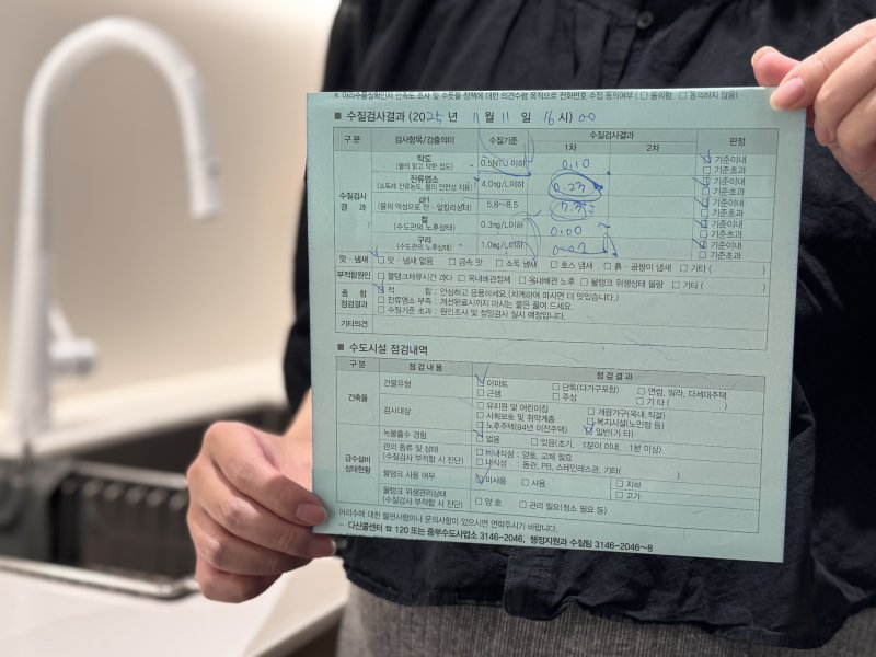 수질검사는 약 5분 내외로 진행되며 △잔류염소 △탁도 △수소이온농도(pH) △철 △구리 등 5개 항목을 현장에서 측정한다. 검사 결과는 즉시 안내되며 이상이 확인되면 원인 진단과 함께 배관 점검·세척, 노후관 교체 지원사업 연계 등 후속 조치도 지원한다.