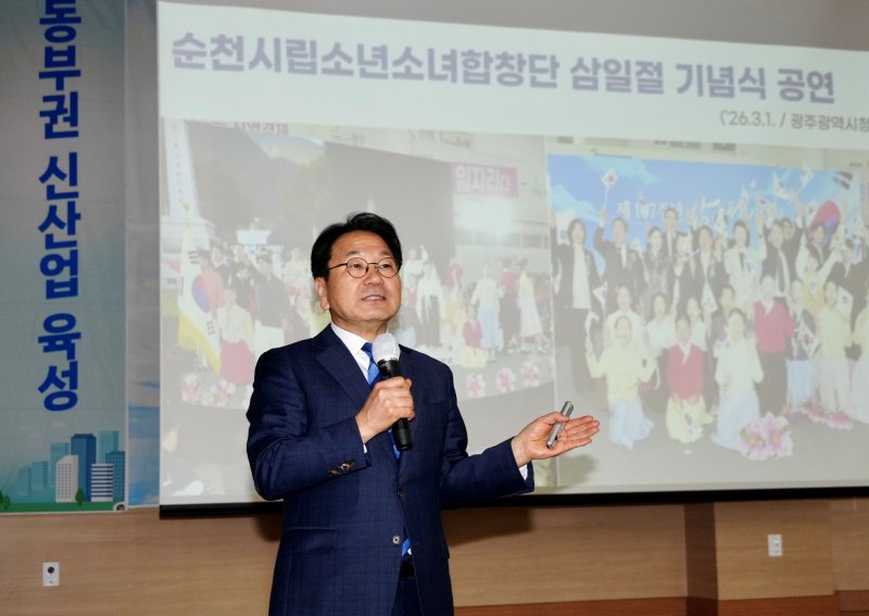 강 시장은 특히 통합특별시 출범 이후 전남 동부권 발전 전략으로 △광주권-동부권 연계 반도체 메가 벨트 조성 △AI·반도체 인재 양성 사다리 확대 △2차전지 산업 육성 △광역교통망을 통한 1시간 생활권 조성 △중소도시형 통합돌봄 특구 지정 등을 제시했다.