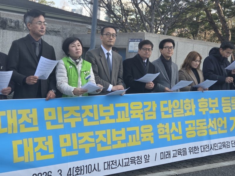 노조, 시민단체 등으로 구성된 '미래교육을 위한 대전시민 교육감 단일화 시민회의'는 4일 오전 10시 대전시교육청 정문 앞에서 기자회견을 열고 경선 후보 확정 및 선거인단 모집 등 향후 일정을 발표했다.