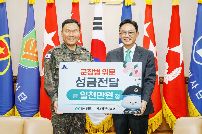 iM뱅크는 육군 제50보병사단과 '1사1병영' 협약을 맺고 정기적인 위문활동을 이어왔으며, 올해는 지역 안보의 핵심 거점인 제2작전사령부까지 기부 대상을 확대하며 군 장병 지원에 힘을 보탰다.