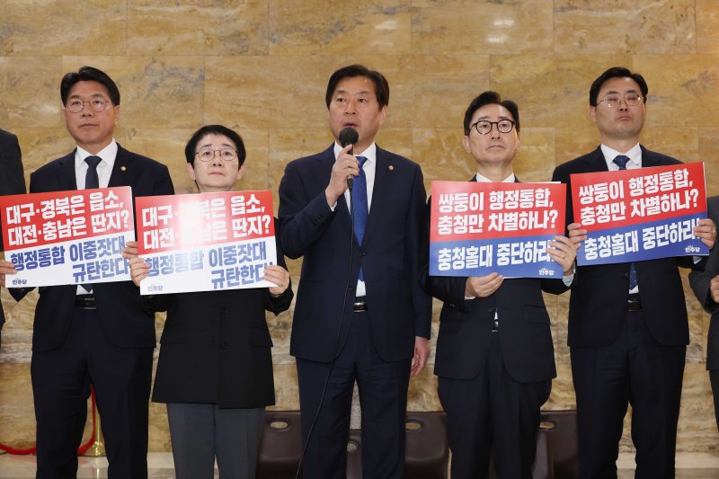 [대전=뉴시스] 조명휘 기자 = 더불어민주당 충남대전통합 및 충청발전특별위원회는 4일 국민의힘과 대전충남 단체장은 행정통합에 대한 일관성 있는 입장을 정하라고 요구했다.