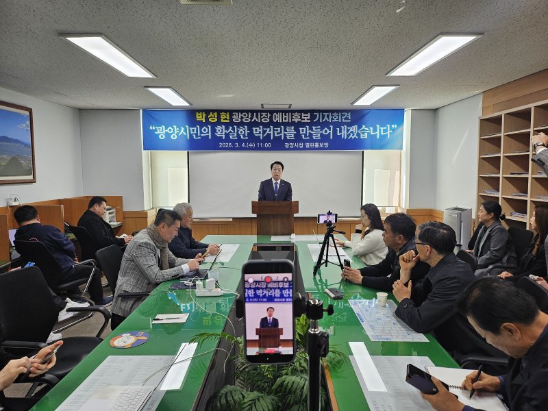 박 후보는 이날 광양시청에서 공약 발표 기자회견을 통해 "광양의 미래 10년을 바꾸는 경제 대전환을 선언한다"며 "침체한 철강·항만 물류산업을 리뉴얼하고 존재감 없는 광양 관광을 경제 자원화하겠다"고 공약했다.